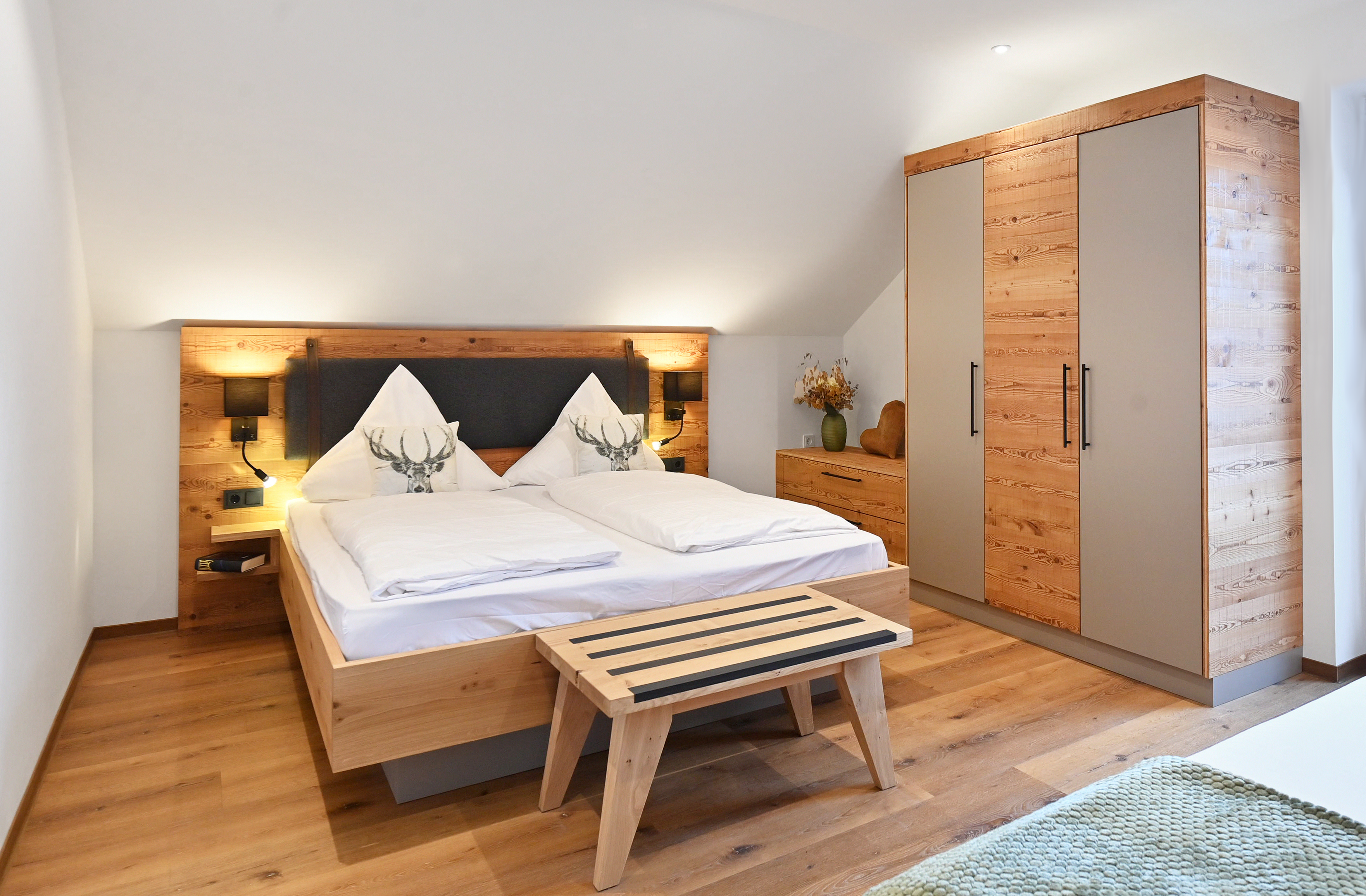 Stühle, Nachttische, Türen, Betten, Schreibtische.... jeder Raum hat seine eigene Geschichte - mit Liebe zum Detail....und handwerklicher Fertigkeit. Hier darf sich der Gast auf die Zimmer Apfel, Birne, Zirbe, Esche, Ulme, Birke, Kastanie, Kirsche, Elsbeere und Ahorn freuen!!