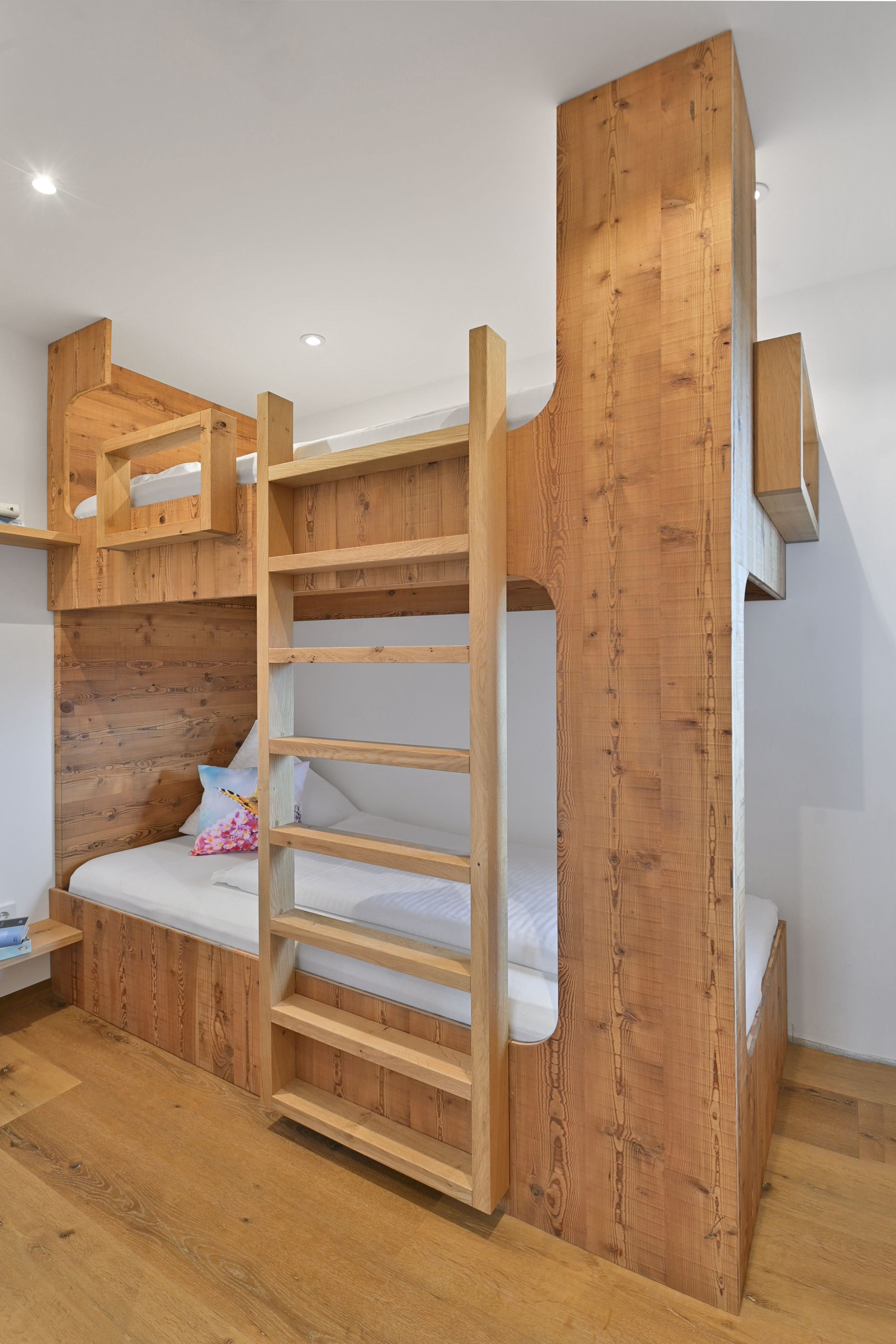 Unsere Schreinerarbeiten umfassten die Ausstattung von zwei Chalets, einem Sauna Ruheraum, zwei Schlaffässer und der Terrasse. Die Aufgabe war es, den Charme der Umgebung aufzugreifen und den Gästen ein Gefühl von Geborgenheit zu vermitteln. In den drei Schlafräumen, darunter auch ein gemütliches Zimmer mit einem handgefertigten Doppelstockbett, sorgen warme Hölzer und natürliche Materialien für ein wohliges Ambiente. Die Badezimmer, in denen Naturstein und Holz aufeinandertreffen, bieten einen Ort der Erholung, während der angrenzende Sauna Ruheraum zum Verweilen und Entspannen einlädt.